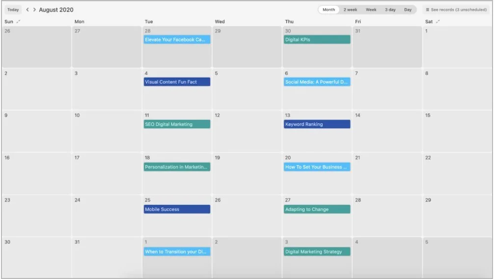 2. Effective Planning: By planning ahead, you can ensure ample time for the preparation and execution of your content. Is your content approval process lengthy? You’ll need to plan ahead. Having your content displayed in a calendar view also allows you to note and develop content for significant dates such as holidays, events, product launches, etc.