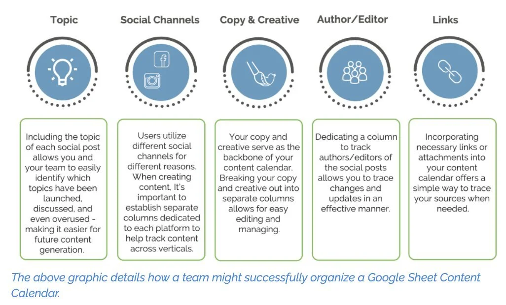 Every successful strategy starts with a plan, but surprisingly, 63% of businesses have yet to establish a documented strategy. A Content Calendar is the perfect planning document for a successful social media strategy. Well-executed Content Calendars provide you with a place to generate ideas, schedule, view and manage your content in a cohesive way. Although creating content in bulk can feel daunting, it sets the foundation for an effective and relatable online brand presence. For a Content Calendar to provide value to your brand, it’s essential to include a few core components. Common elements of a thorough Content Calendar include the following: